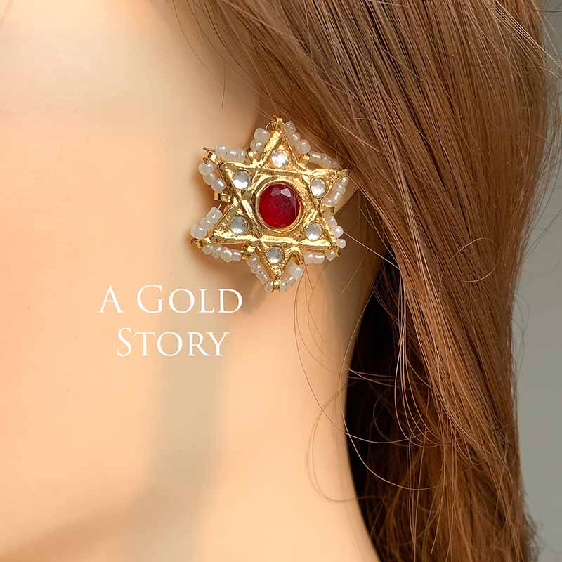 STAR KUNDAN STUDS RED/ MAROON